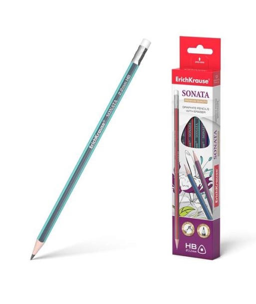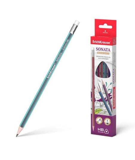 Erichkrause Sonata HB Lapiz de Grafito Triangular con Goma de Borrar Madera Seleccionada Dureza HB Resisten
