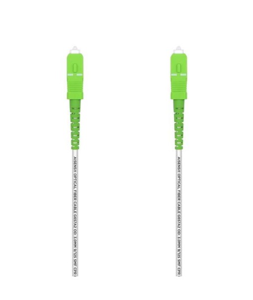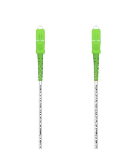 AISENS® - Latiguillo de fibra monomodo con conector SC/APC en ambos lados y tipo de fibra G657A2. El cable de fibra óptica monomodo de 9/125µm es ideal para redes empresariales, salas de telecomunicaciones, granjas de servidores, redes de almacenamiento en la nube y cualquier lugar donde se necesiten latiguillos de fibra óptica. Este cable de fibra óptica OS2 monomodo 9/125 es ideal para conectar conexiones Ethernet 1G/10G/40G/100G. Puede transmitir datos de hasta 10km a 1310nm, o hasta 40km a 1550nm. Libre de halógenos (LSZH o LSOH o LS0H o LSFH) y cumple la normativa CPR Dca. Tipo de conector: SC a SC Tipo de pulido: APC a APC Pérdida de inserción &lt,0.3dB Pérdida de retorno &gt,50dB Modo de fibra: OS2 9/125µm Tipo de fibra: ITU-T G.657A2 monomodo (SM) 9/125